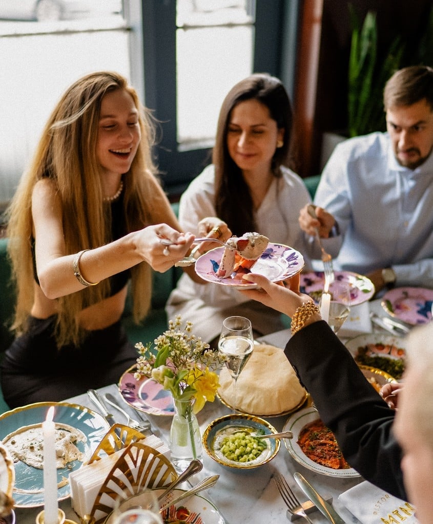 - Shared platters and pre-ordered menus.