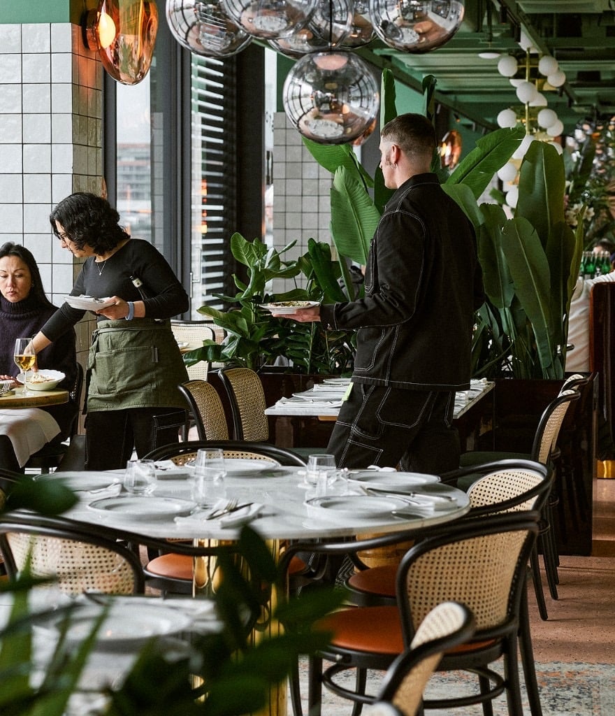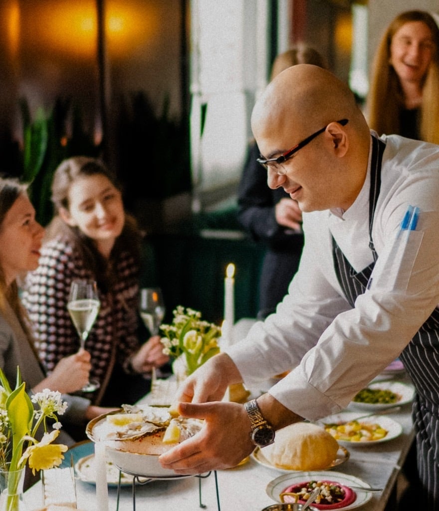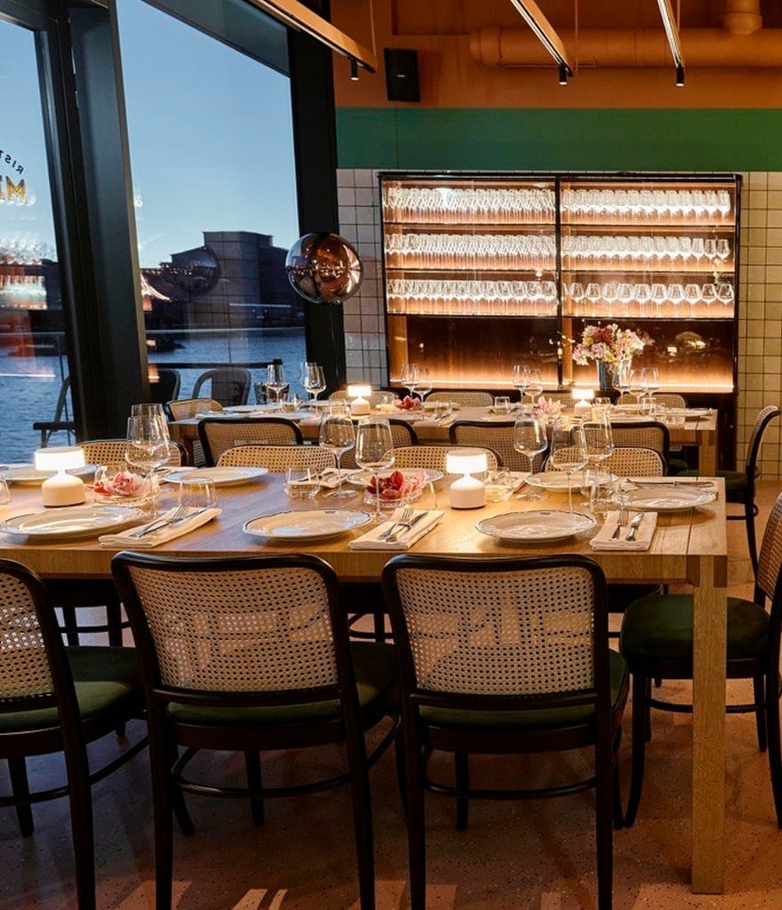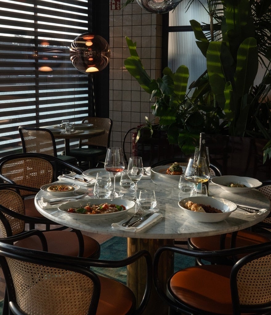 Elegant table setups. Tailored, pre-set menus. Shared plates. Lively rhythm and the energy of the moment.